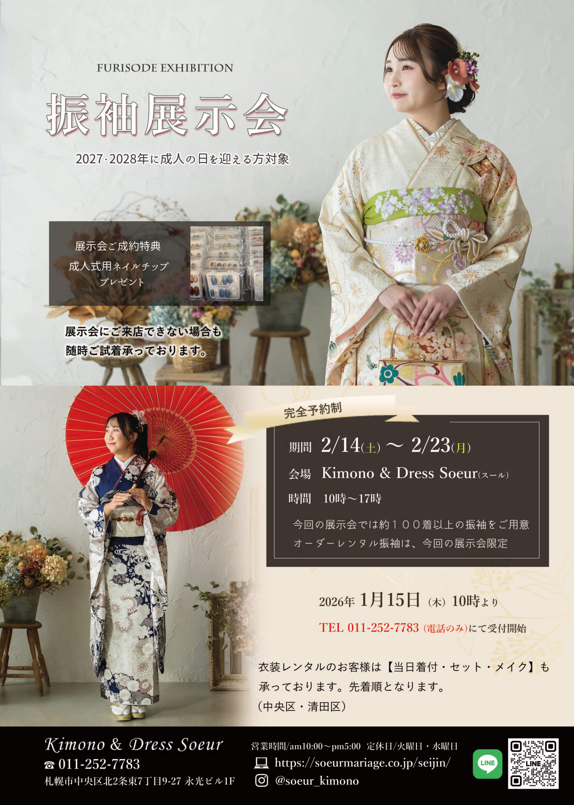 展示会で振袖をご成約して、【振袖用ネイルチップ】をプレゼントします。